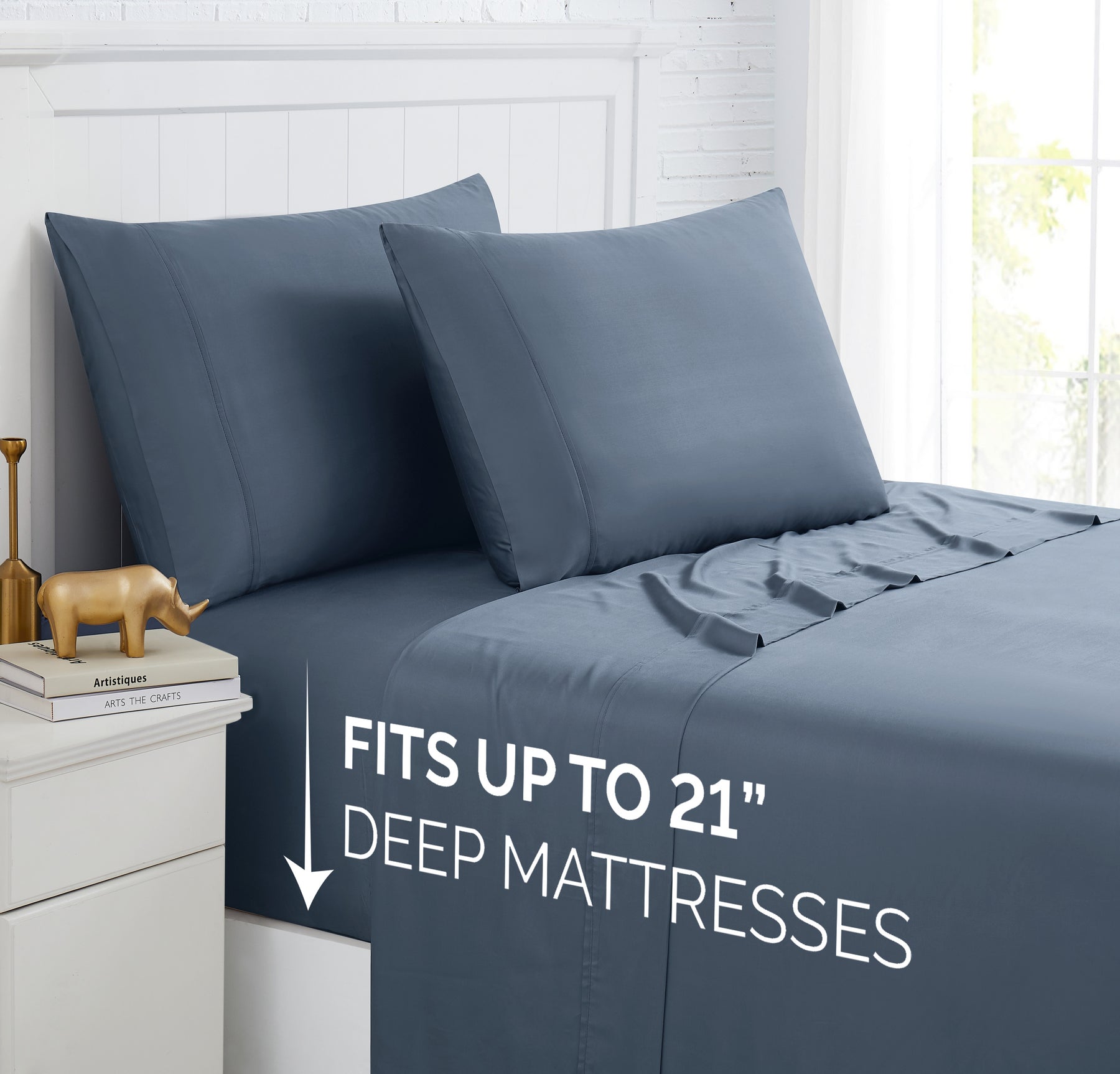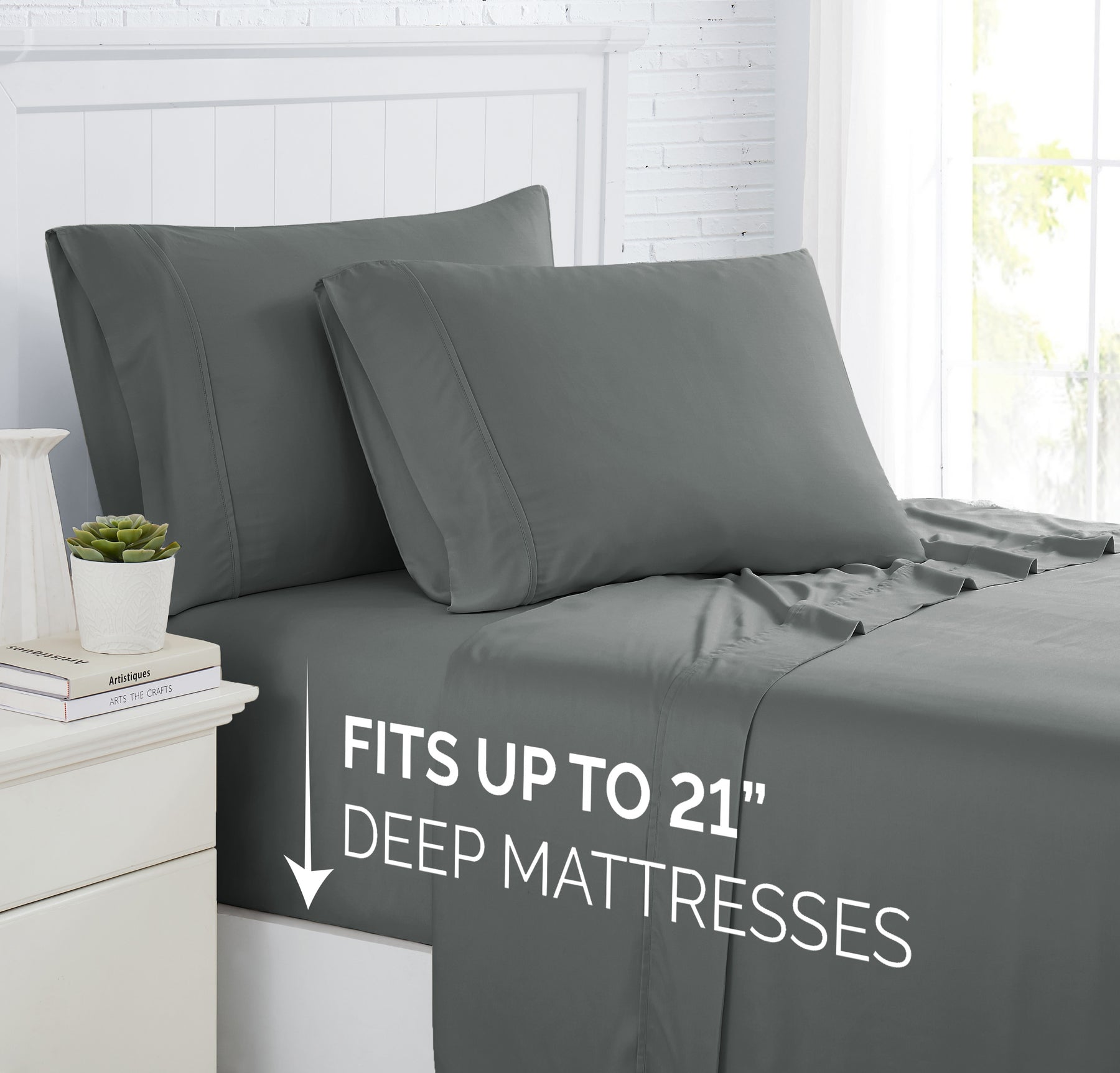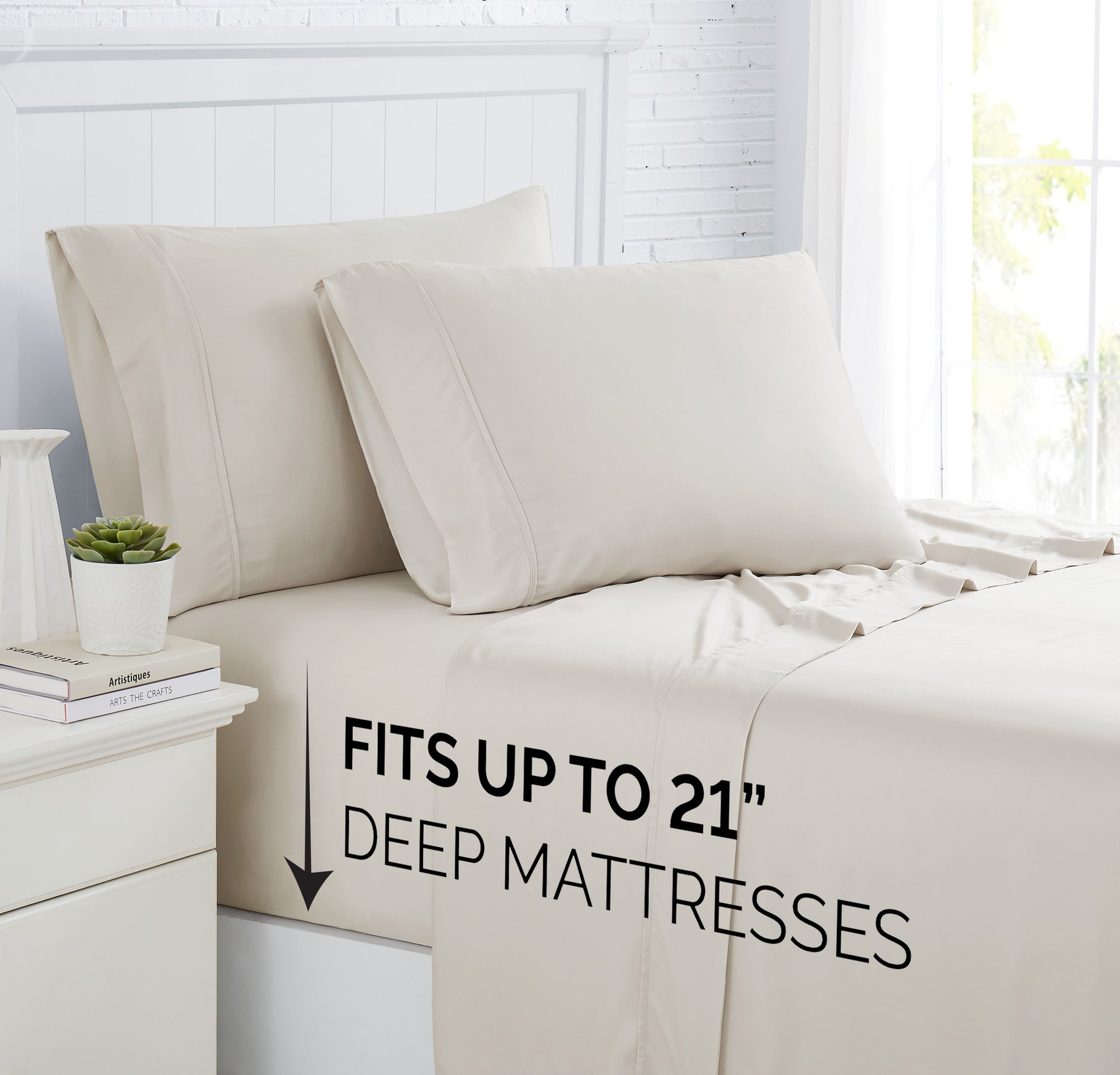 Fitted sheets that stay, so you can let go and enjoy true comfort! Guaranteed to fit up to 21-inch deep mattresses.