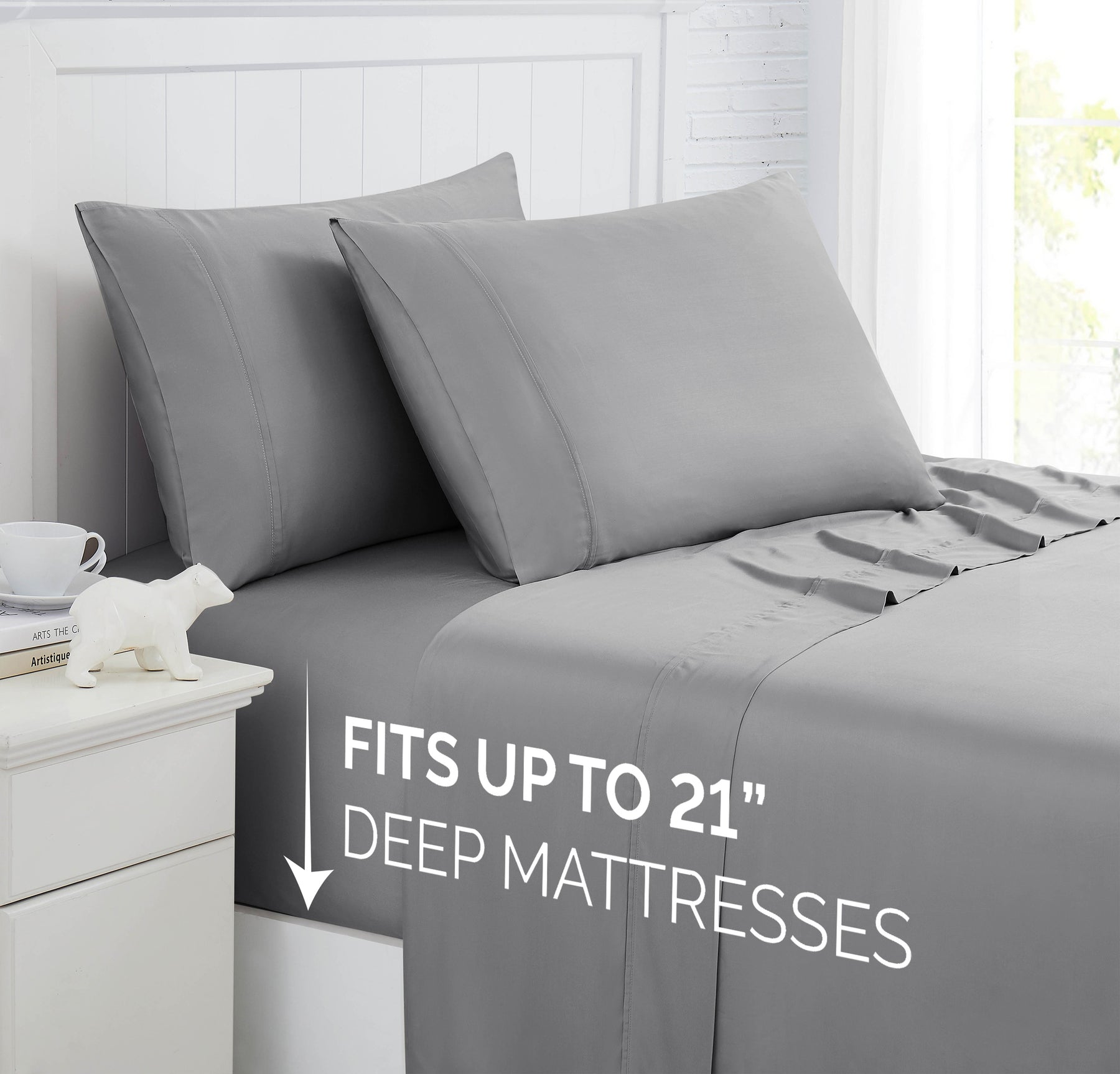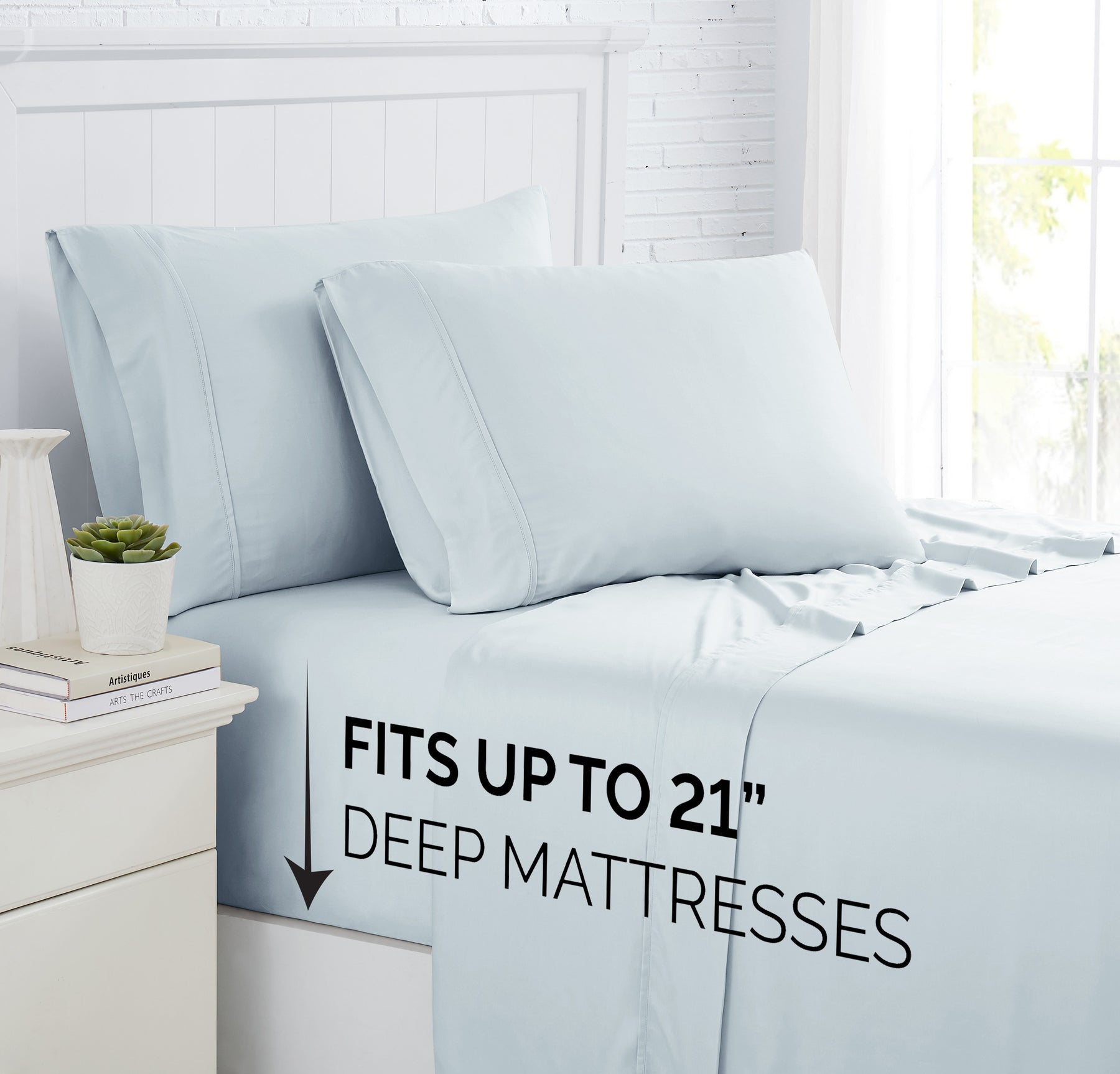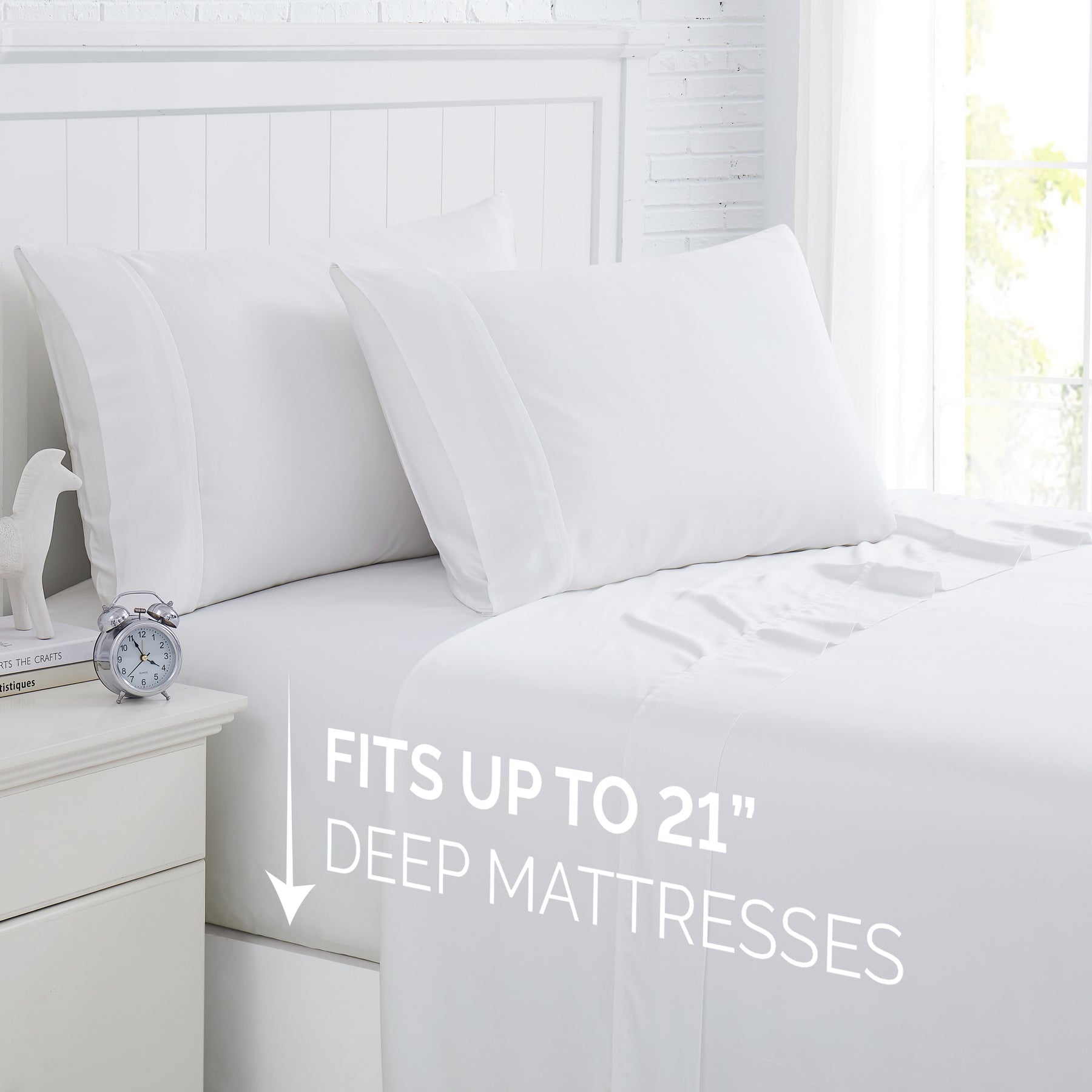 Fitted sheets that stay, so you can let go and enjoy true comfort! Guaranteed to fit up to 21-inch deep mattresses.