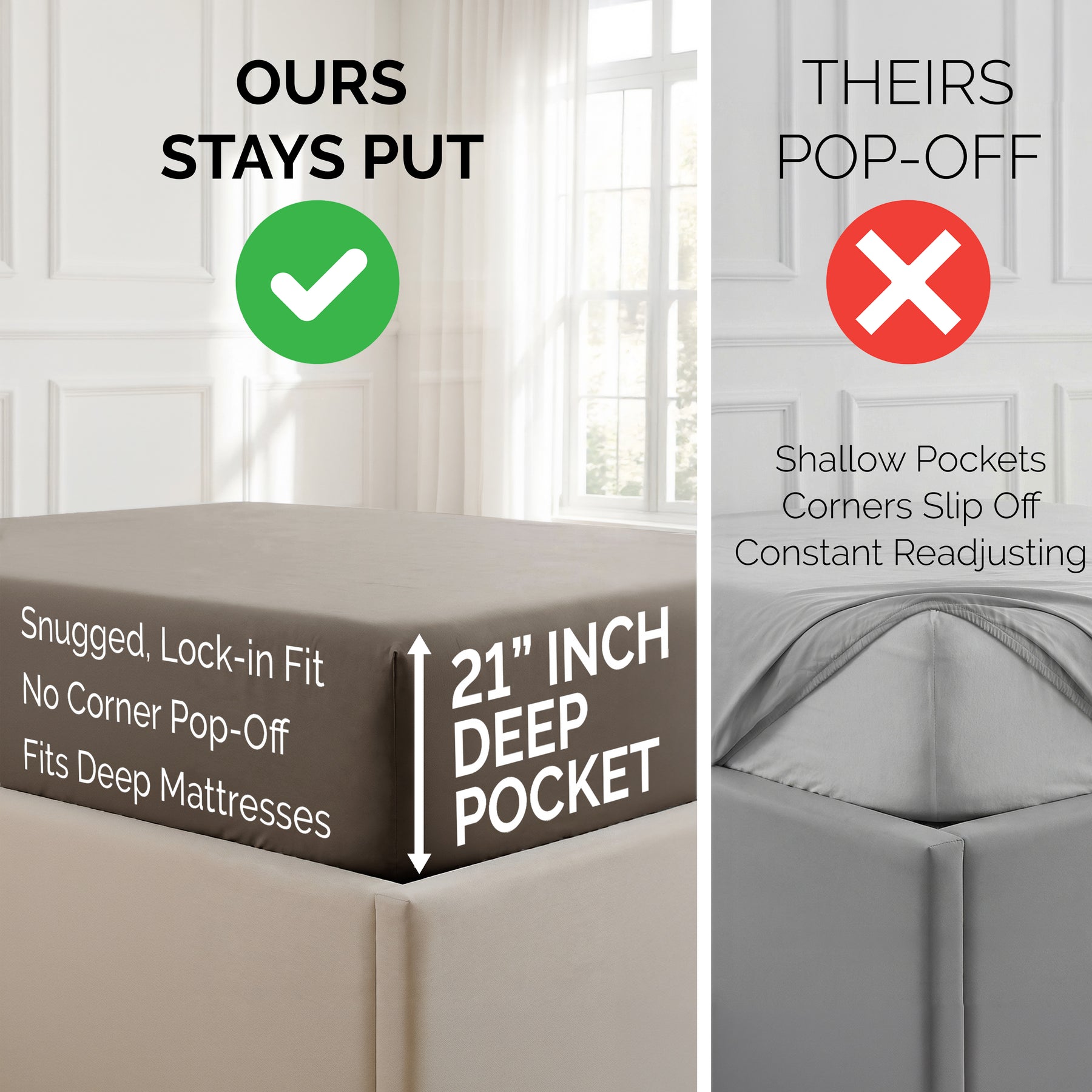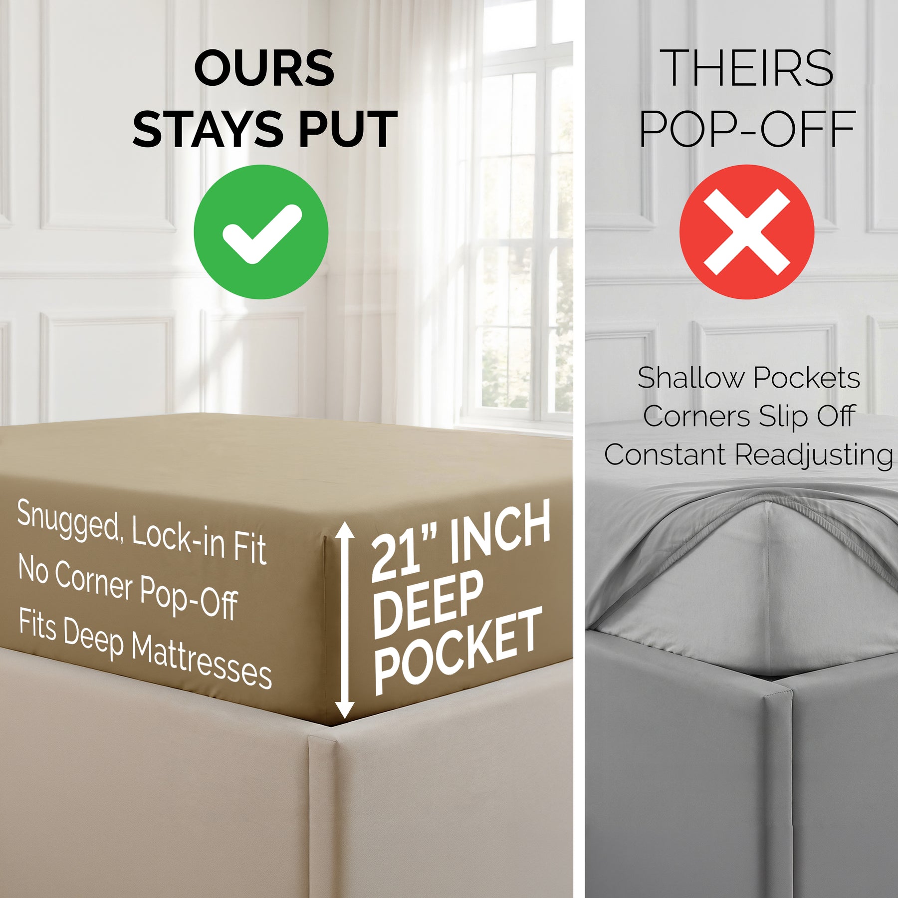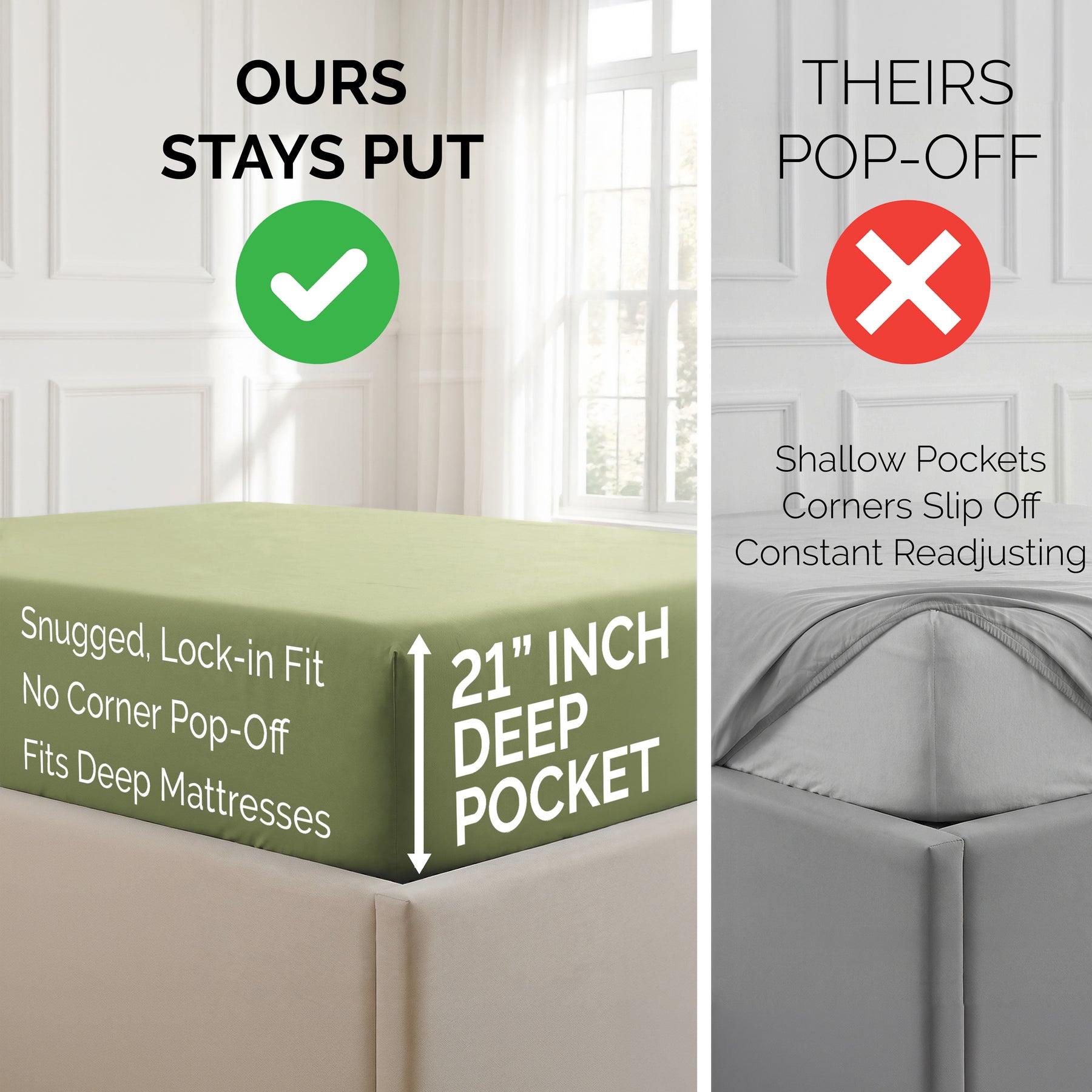 Fitted sheets that stay, so you can let go and enjoy true comfort! Guaranteed to fit up to 21-inch deep mattresses.