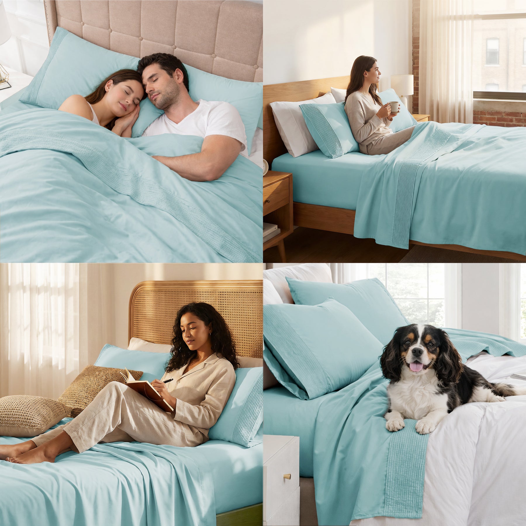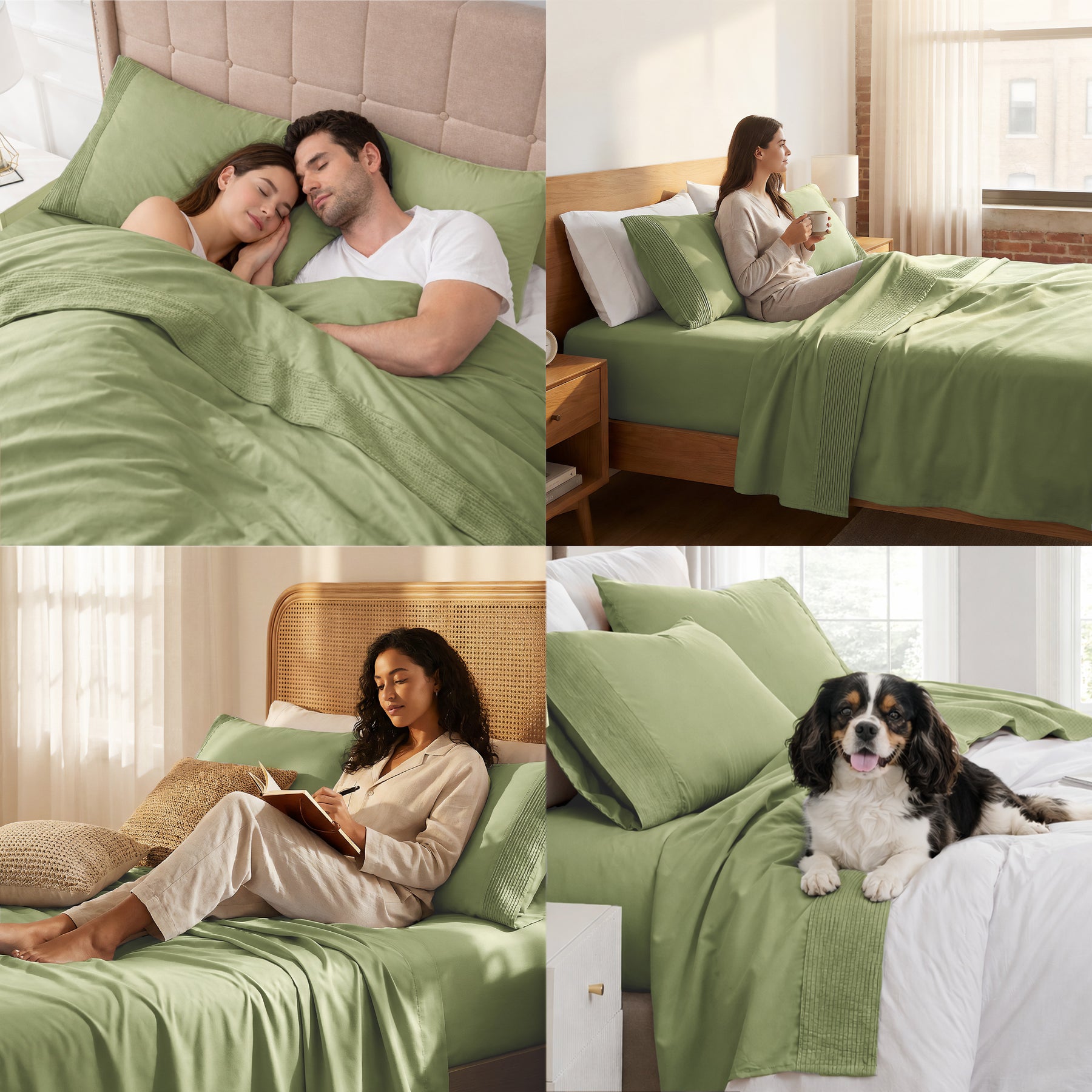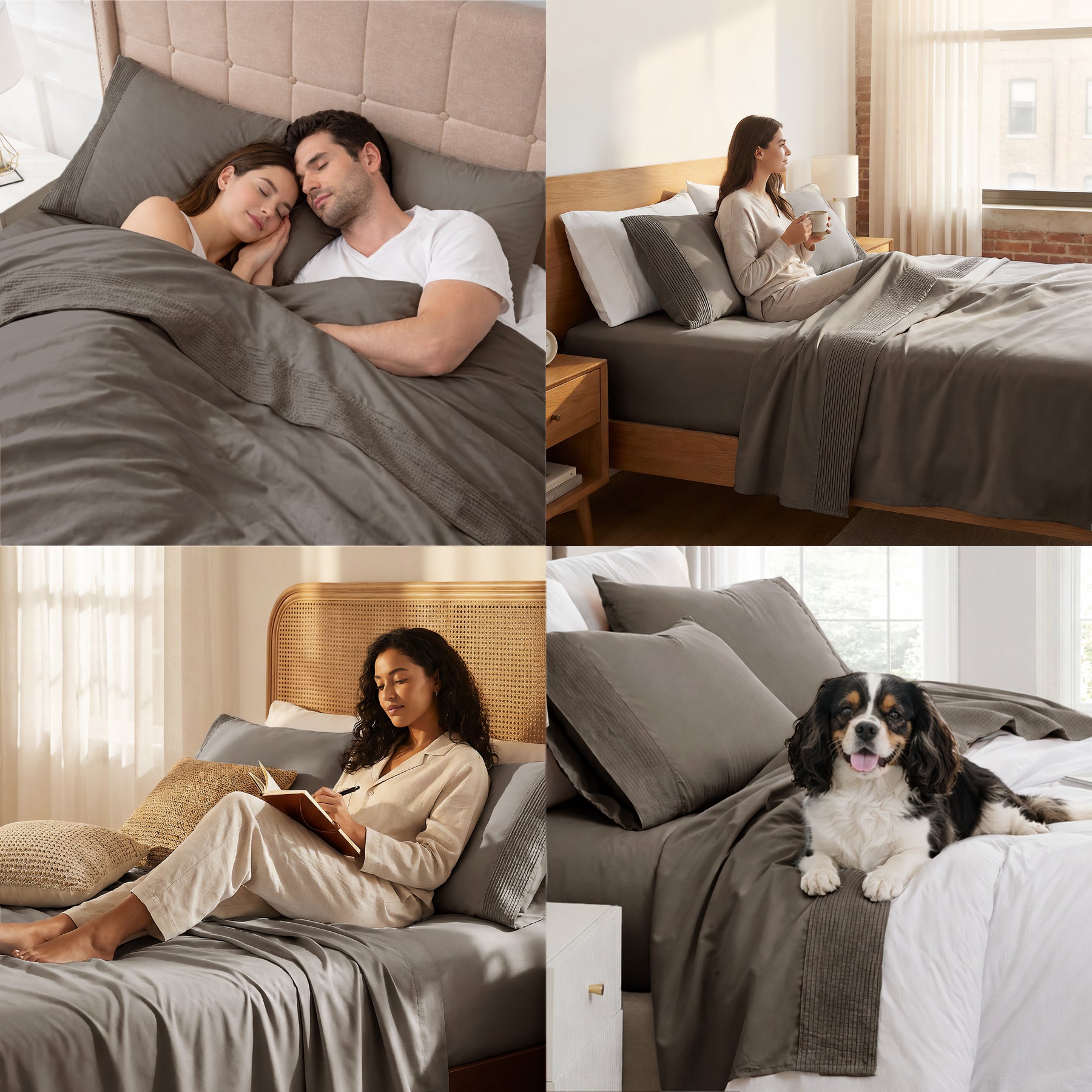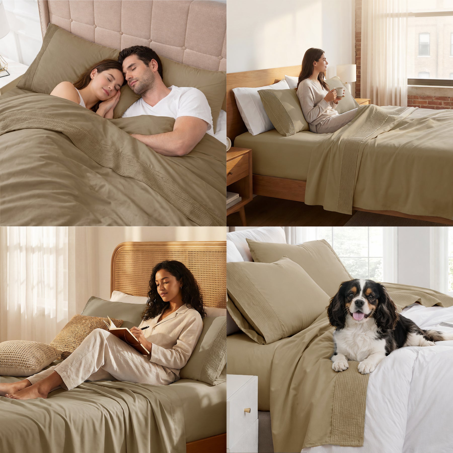 Fitted sheets that stay, so you can let go and enjoy true comfort! Guaranteed to fit up to 21-inch deep mattresses.