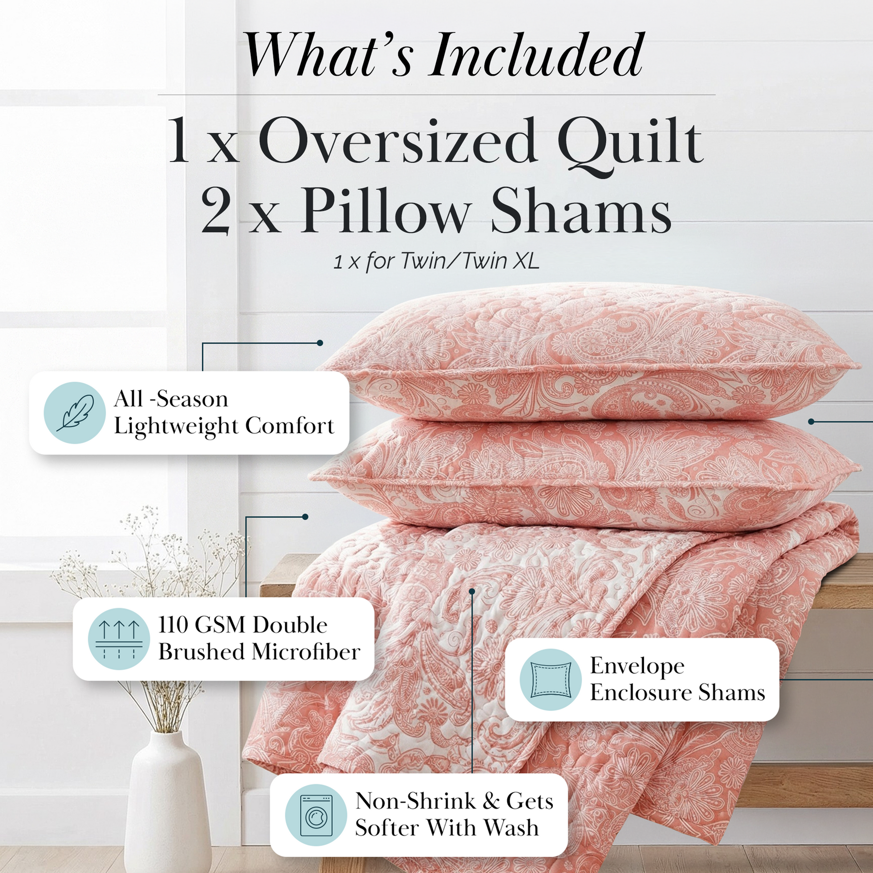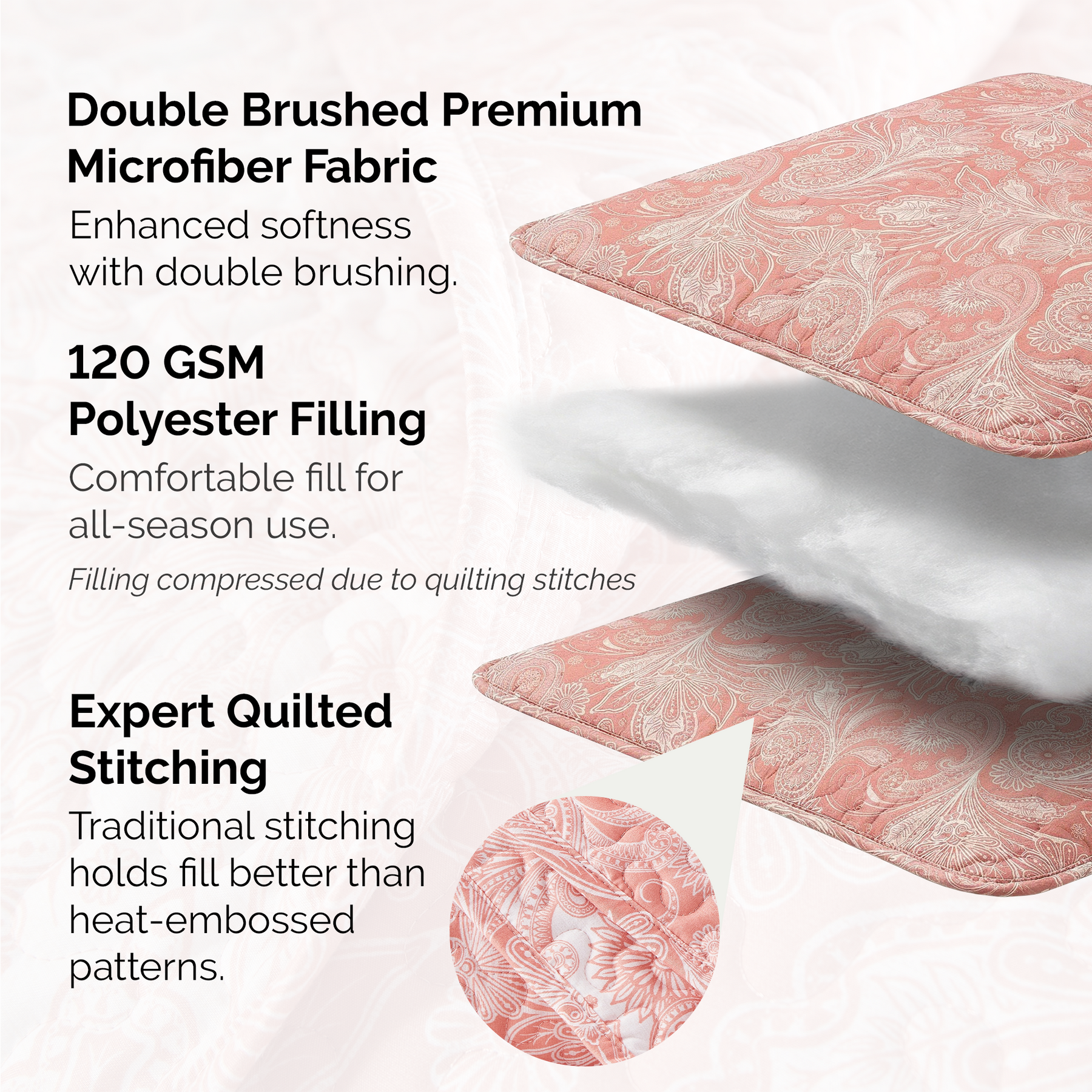 Perfect Paisley Reversible Quilt Set in Coral Stack Together