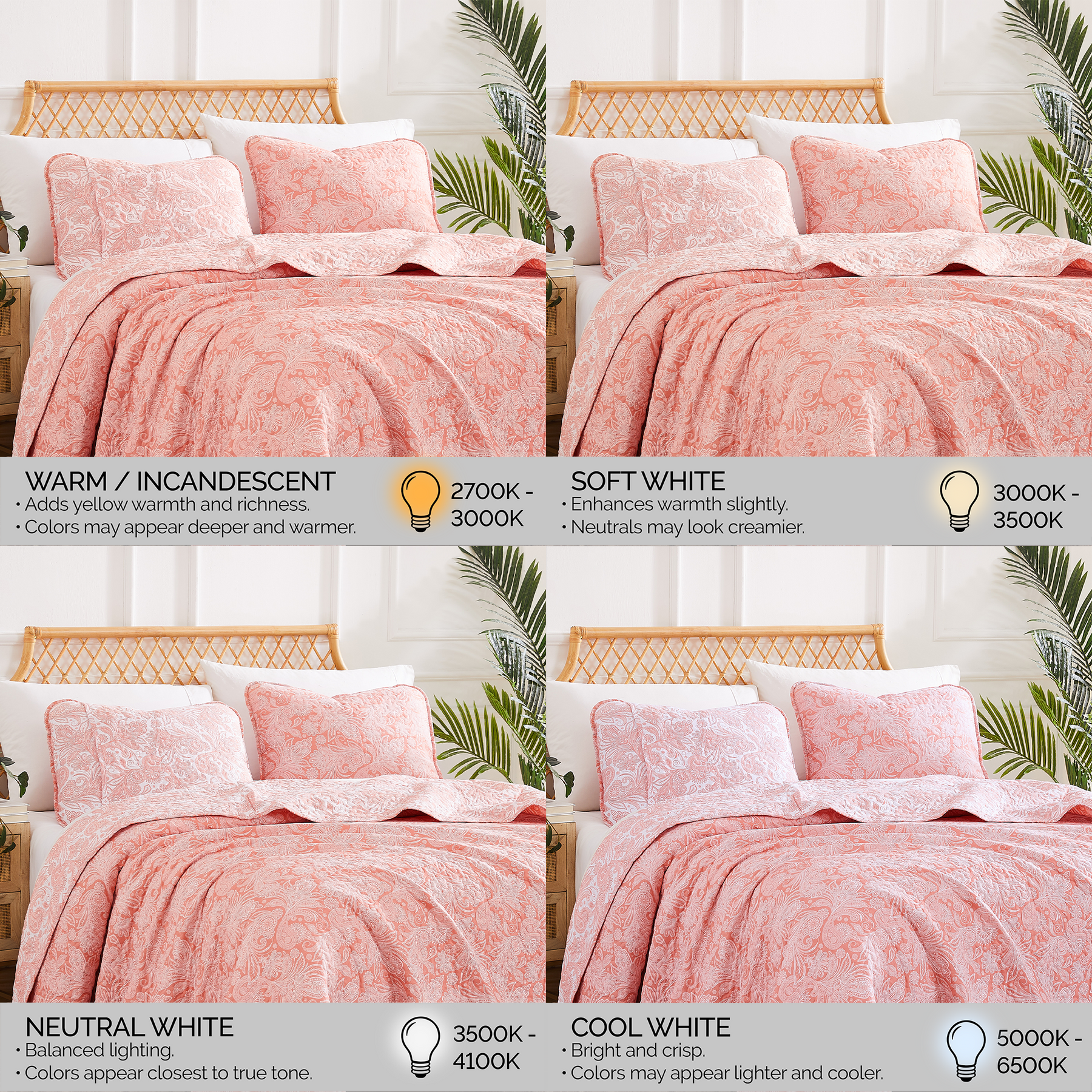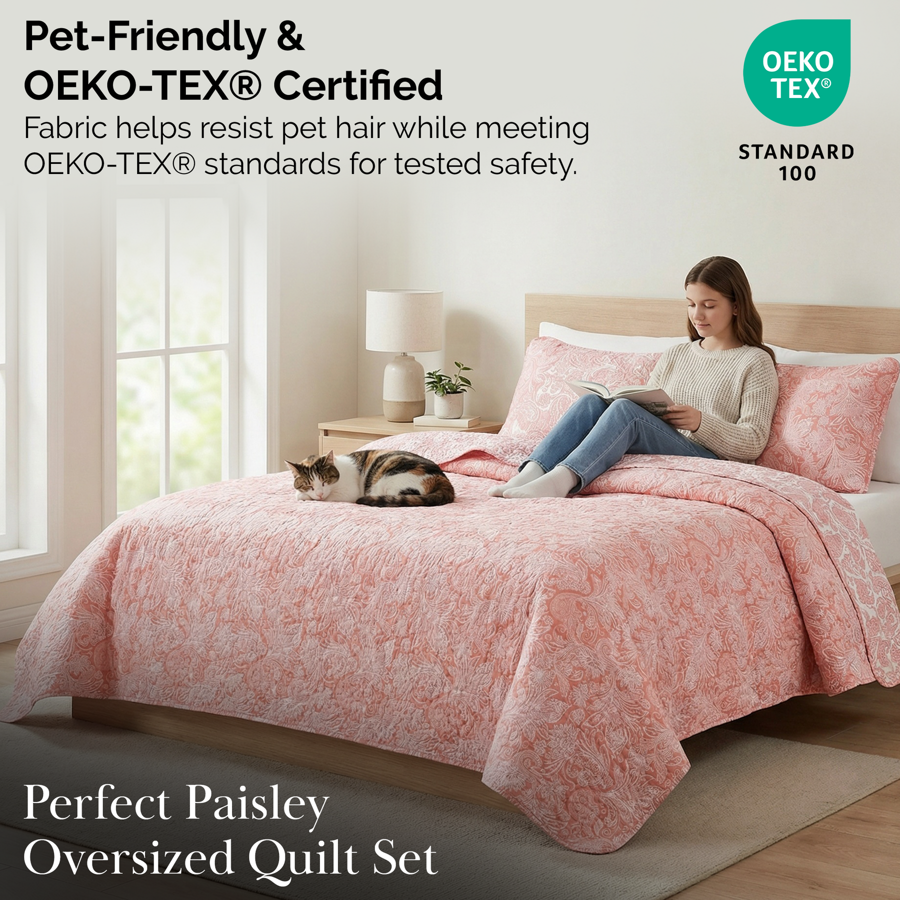 Side View of Perfect Paisley Reversible Quilt Set in Coral